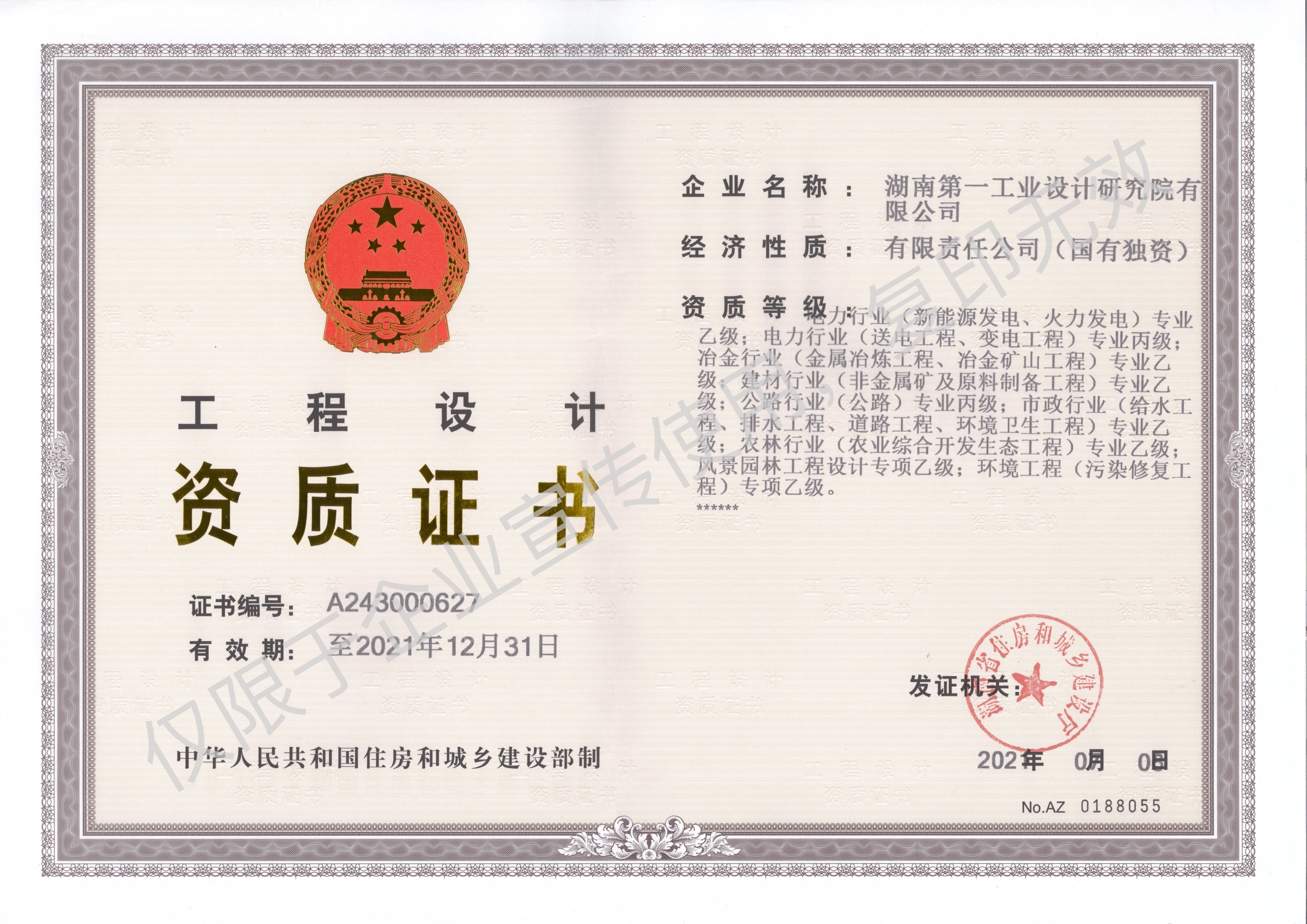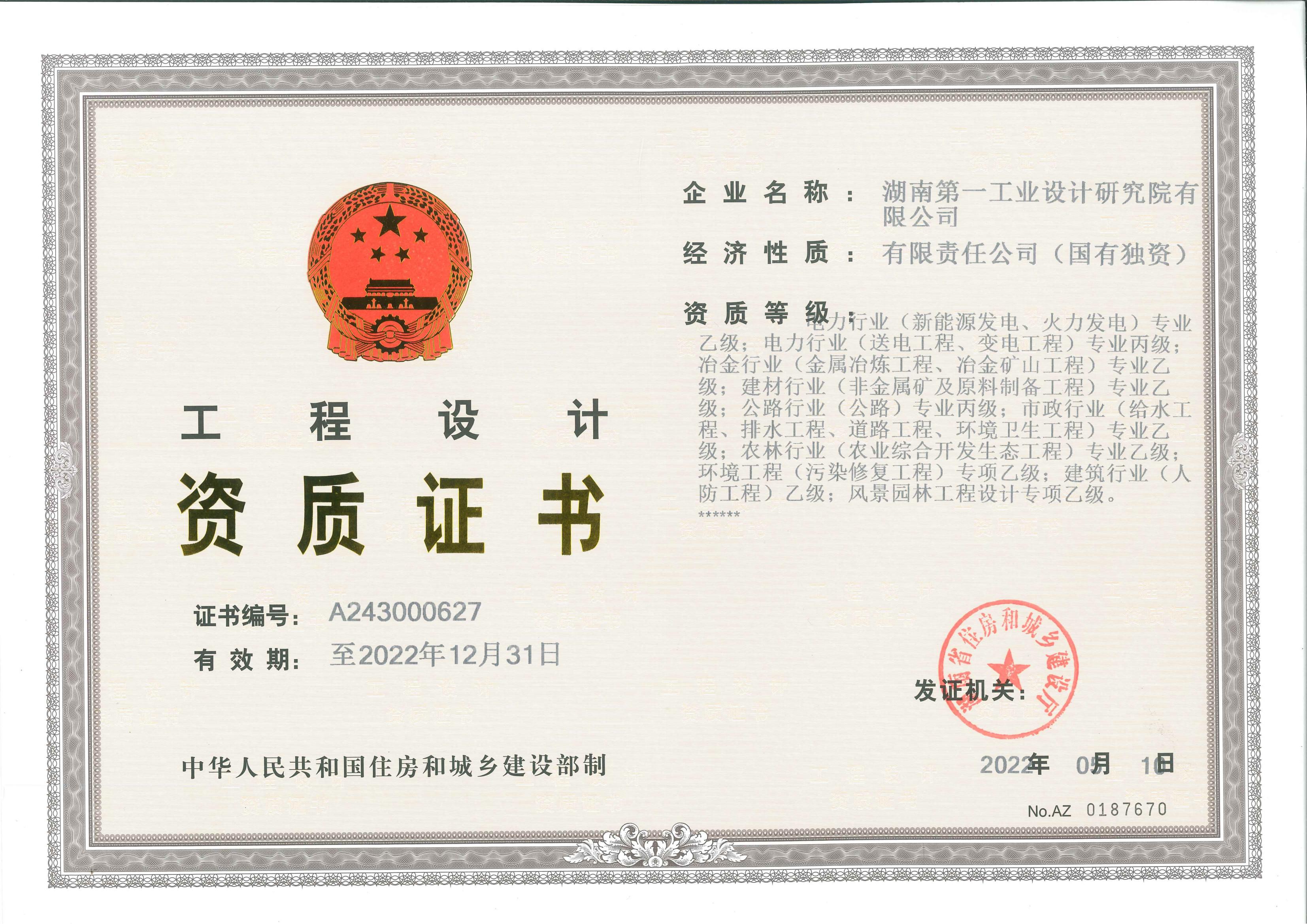 工程設(shè)計(jì)資質(zhì)證書(shū)