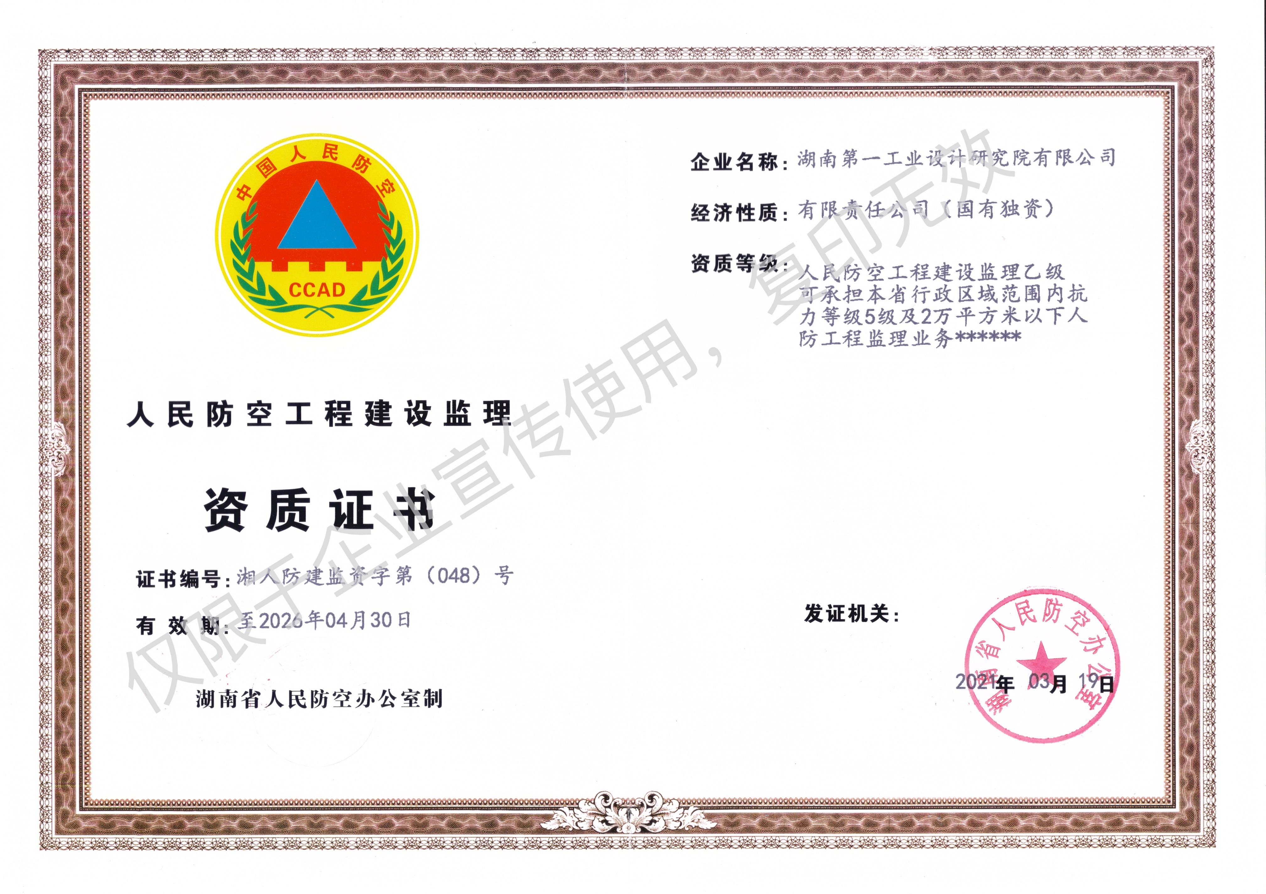 工程設(shè)計(jì)乙級(jí)資質(zhì)證書(shū)