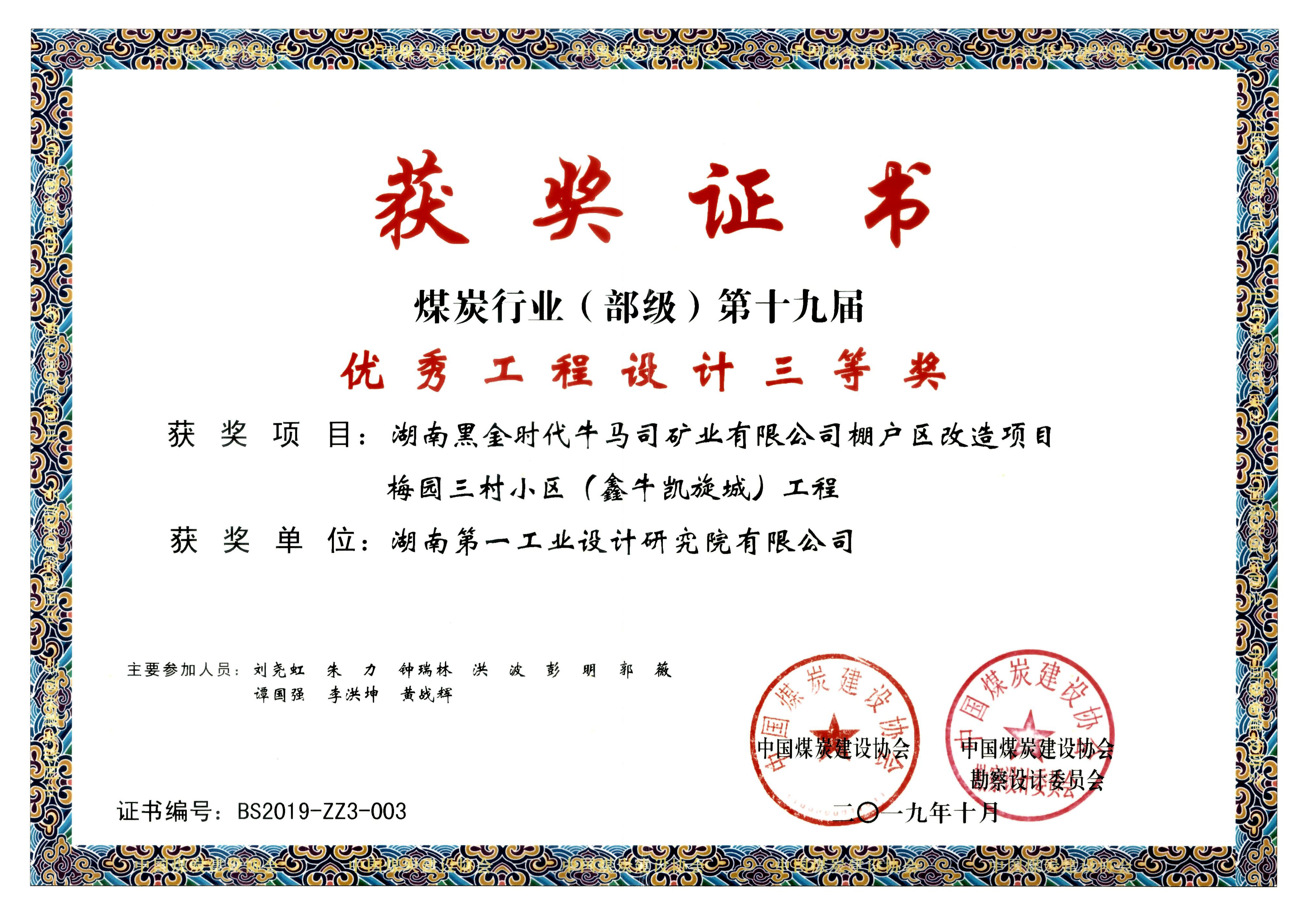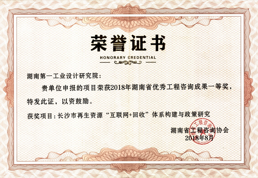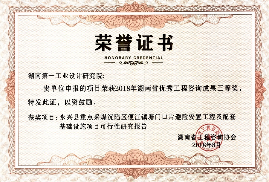 湖南省優(yōu)秀設(shè)計(jì)表?yè)P(yáng)金獎(jiǎng)(1984)